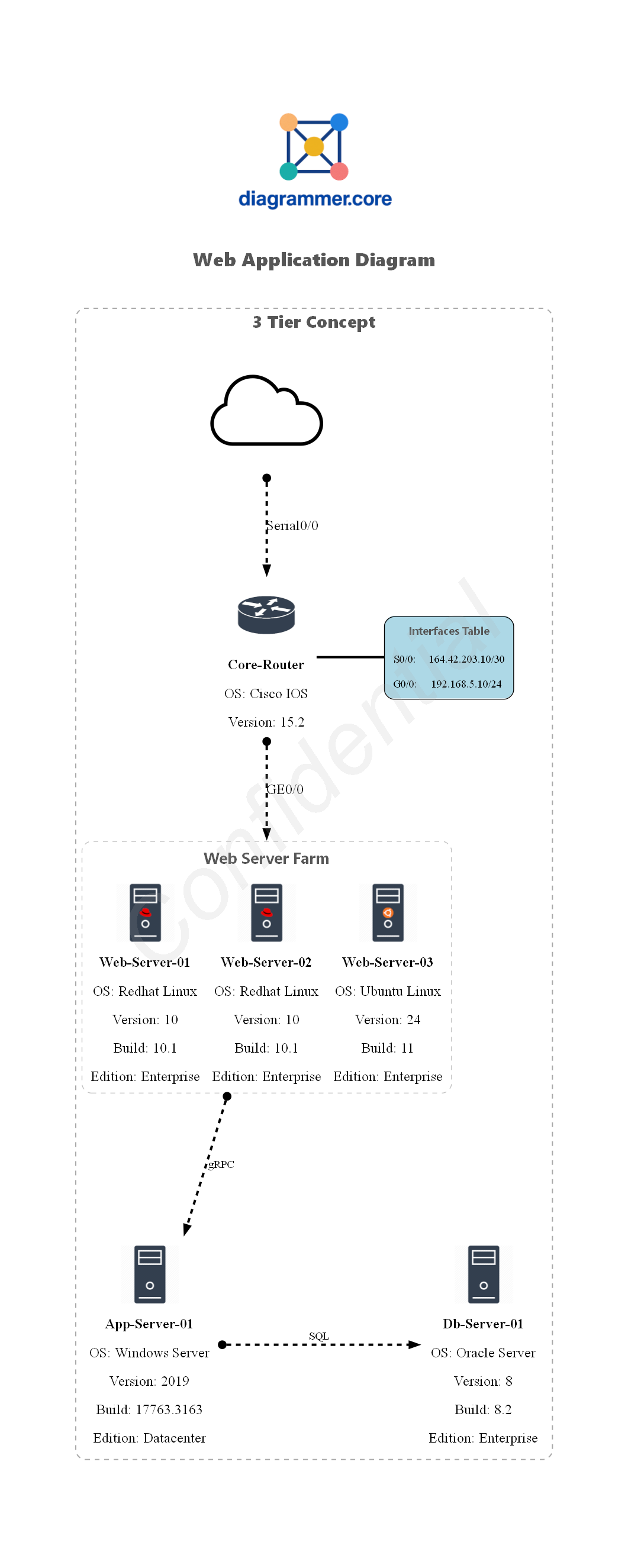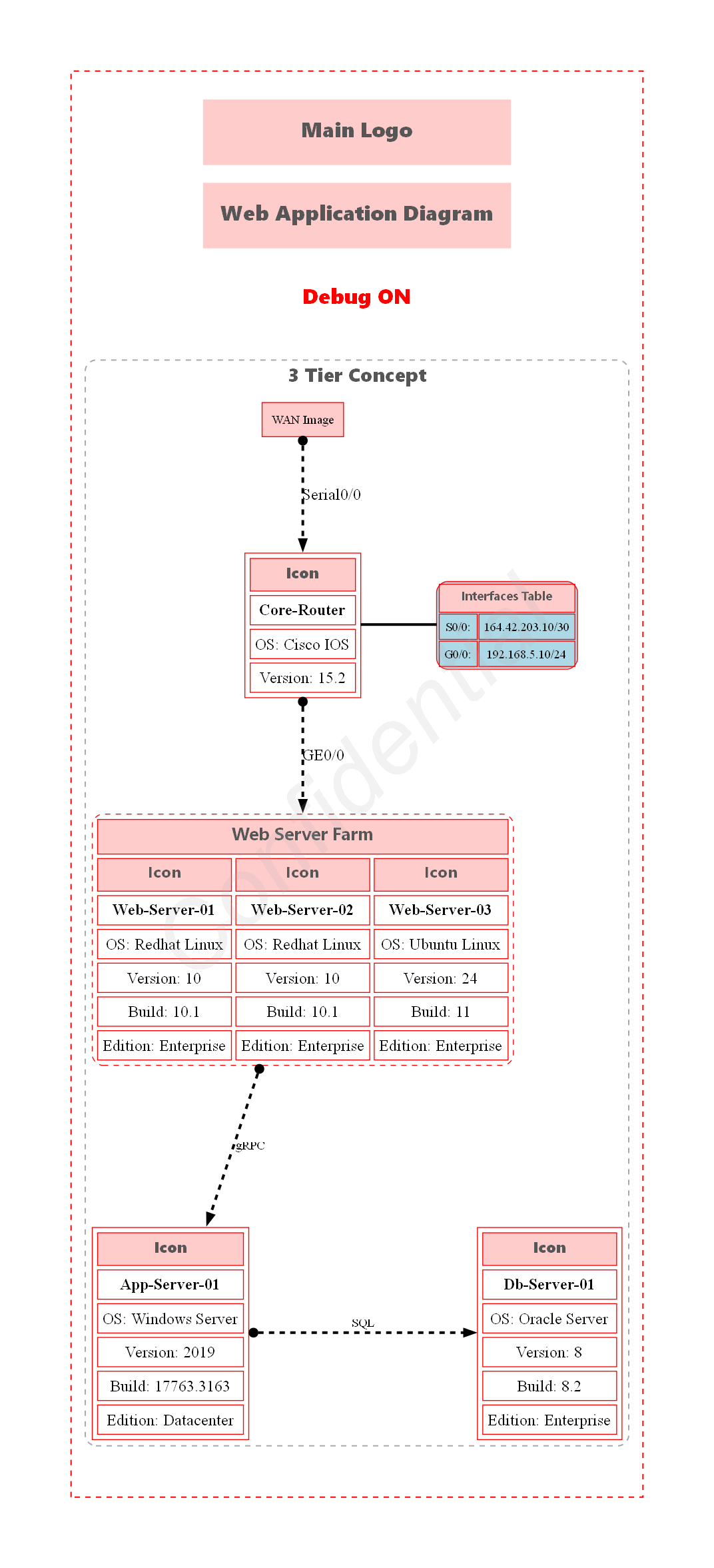 New-Diagrammer -InputObject $example12 -OutputFolderPath $OutputFolderPath -Format $Format -MainDiagramLabel $MainGraphLabel -Filename Example12 -LogoName "Main_Logo" -Direction top-to-bottom -IconPath $IconPath -ImagesObj $Images -WaterMarkText "Confidential" -WaterMarkColor "DarkGray" -WaterMarkFontOpacity 40 -DraftMode:$DraftMode